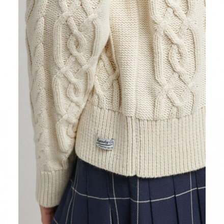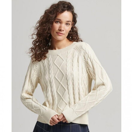 SUPERDRY VINTAGE COTTON CABLE CREW ECRU krémová